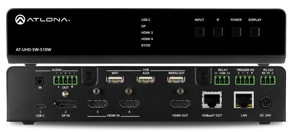 The SW-510W in unique in that it switches between wireless casting and four wired AV inputs. It’s also equipped with the inputs found in all laptops today, including USB-C – and you can charge through this same port!