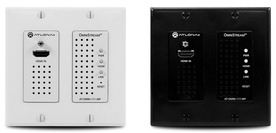 The Atlona OmniStream™ 111 WP (AT-OMNI-111-WP) is a single-channel networked AV encoder for HDMI 2.0 sources up to 4K @ 60 Hz and HDR (High Dynamic Range), plus embedded audio. It features a US two-gang, Decora-style wallplate form factor, and includes interchangeable black and white wallplates and faceplates. The OmniStream 111 WP is part of the OmniStream Pro Series, designed for high performance, flexible distribution of AV over standard, off-the-shelf Gigabit Ethernet switches in commercial audiovisual applications. It is HDCP 2.2 compliant and ideal for the latest Ultra High-Definition and HDR sources. This networked AV encoder features advanced high-quality, VC-2 visually lossless video compression technology with user-selectable, video quality optimization engines designed for computer-generated imaging, or motion video content. The Atlona OmniStream 111 WP achieves extremely low, sub-frame latency when paired with OmniStream AV decoders.