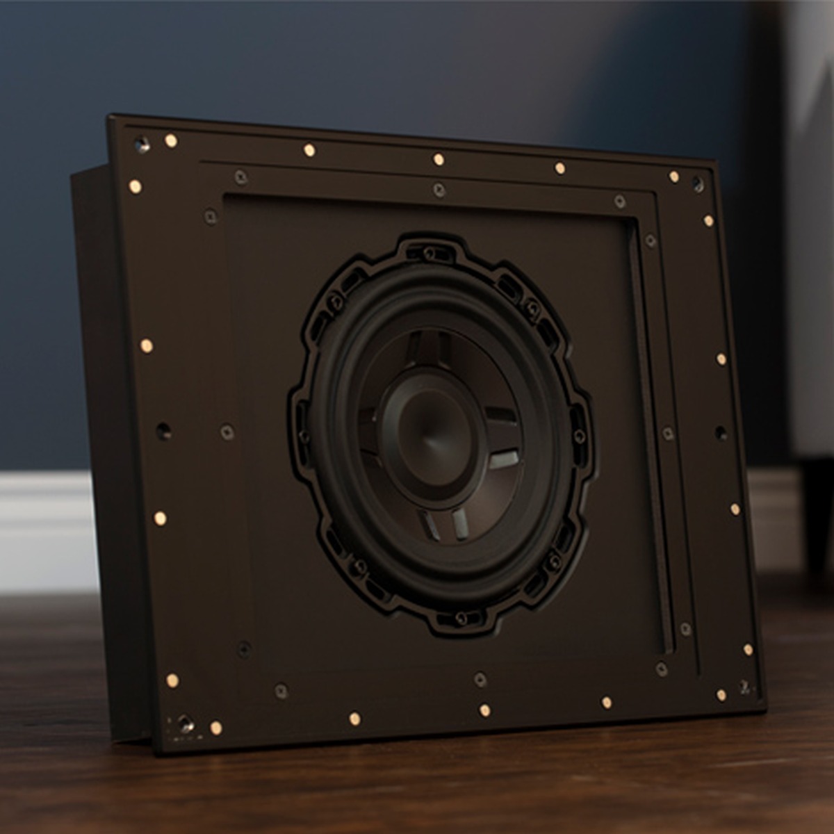 At less than 4″ deep, Leon’s ground-breaking Aaros 8″ in-wall subwoofer redefines the possibility of large bass from a small enclosure. Soundly constructed to prevent unwanted resonance, this in-wall subwoofer is ideal for Living Space Theater applications where no floor space is available for a traditional sub. With color-matched perforated metal, easily installed pre- or post-construction, and paired with Leon’s 1,000W subwoofer amplifier, this sub stands out by blending in.