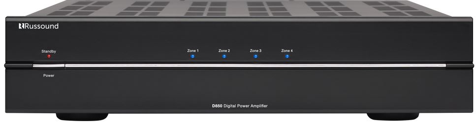 The Russound D850 digital multi-channel amplifier offers the features custom installation professionals demand while offering a lighter weight, smaller chassis and more efficient Class D power. The feature-rich design of the D850 is ideal for the demands of distributed audio systems and is also compatible with our Russound volume controls. Its 8 channels are arranged in stereo pairs to provide discreet amplification and custom configurations for each of 4 zones.
