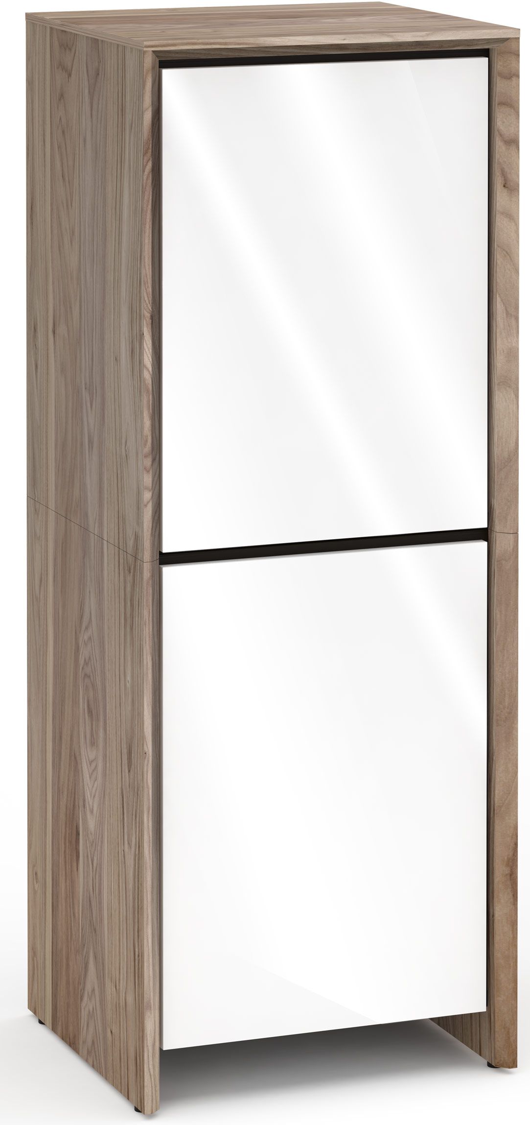 Salamander Designs® Barcelona 617 AV Cabinet-Natural Walnut/Gloss White with removable rear panel and hidden adjustable levelersRead More